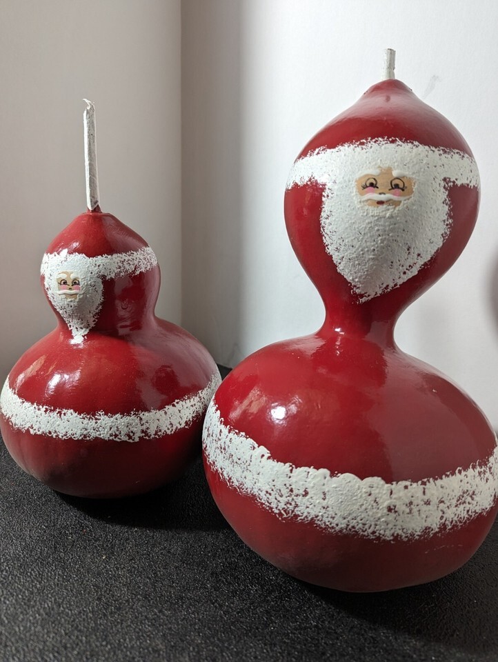 Hand made Santa gourds one is 12" x 7" the other is 10" x 5". They look as if they have not seen a lot of use.
