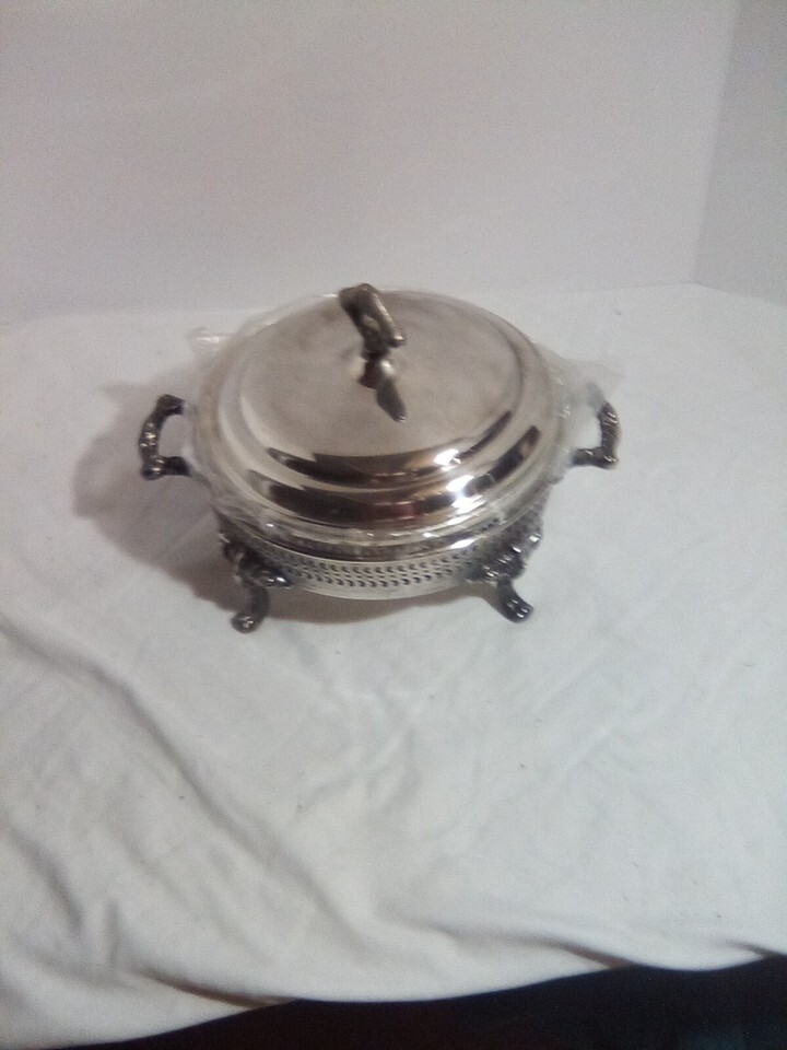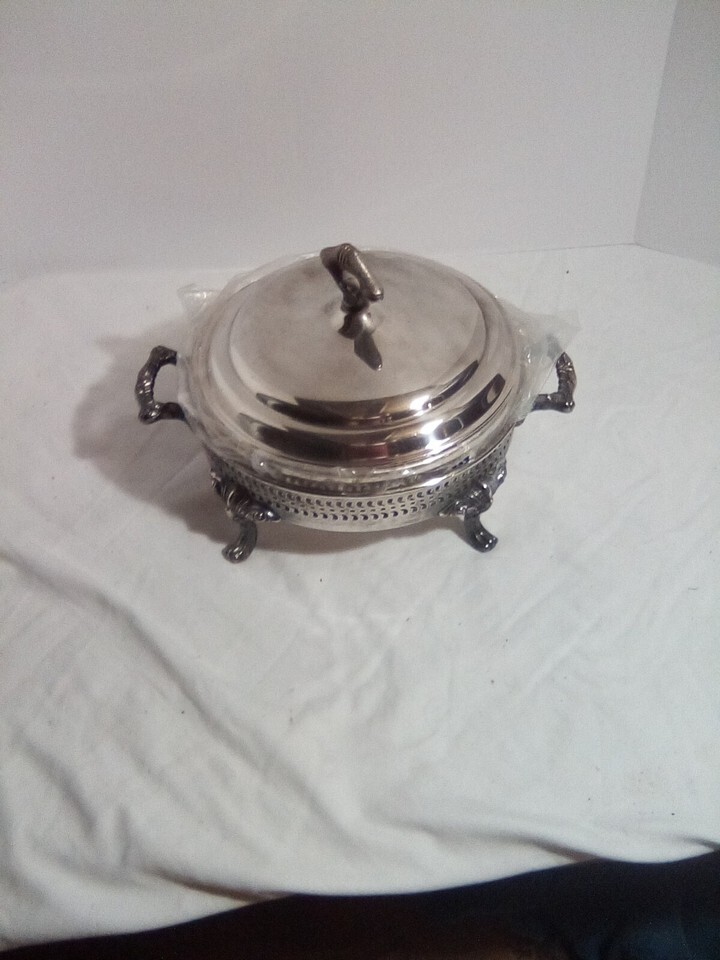 F. B. Rogers silver company chaffing dish complete with lid. Silver plate dish 9" wide