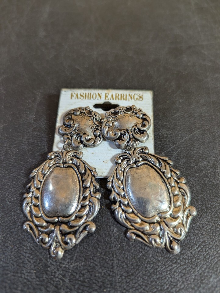 Pair Of Silver Tone 3" Long Fashion Earrings and similar items