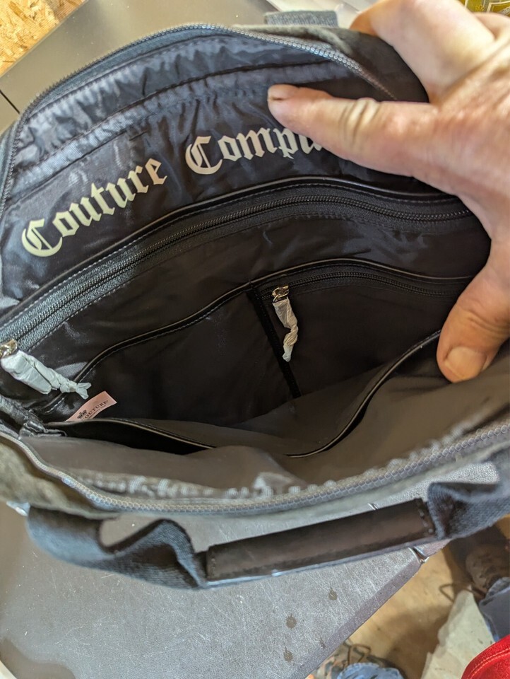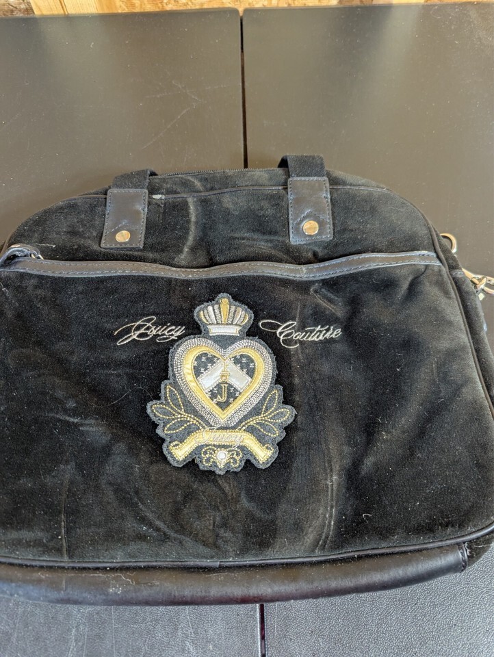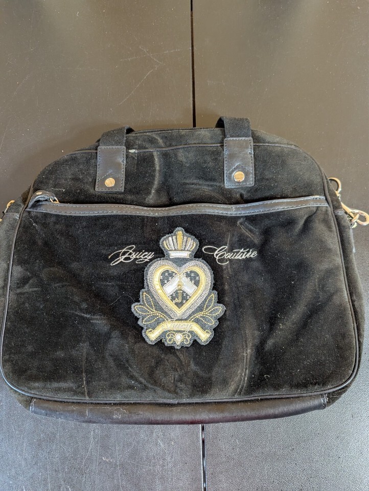 Vintage JUICY COUTURE Y2K Black Velour Messenger Bag Black Laptop Case Rare