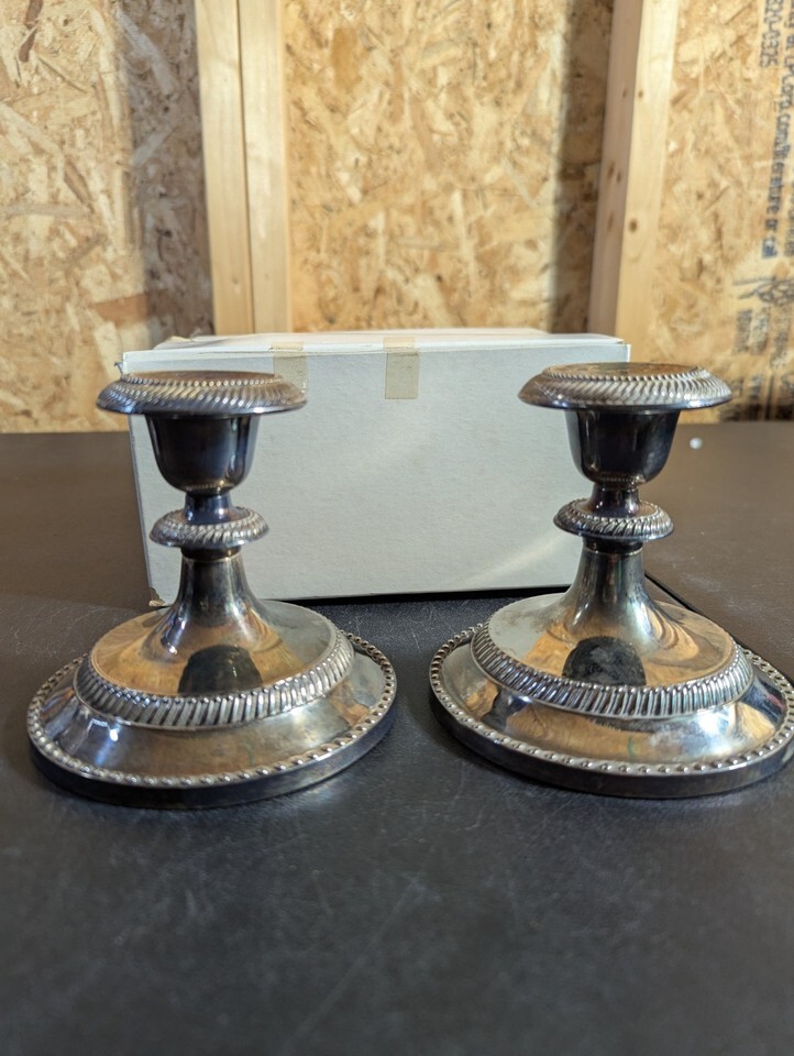 Pair Of M. H. Silver Plated Candle Holders and similar items