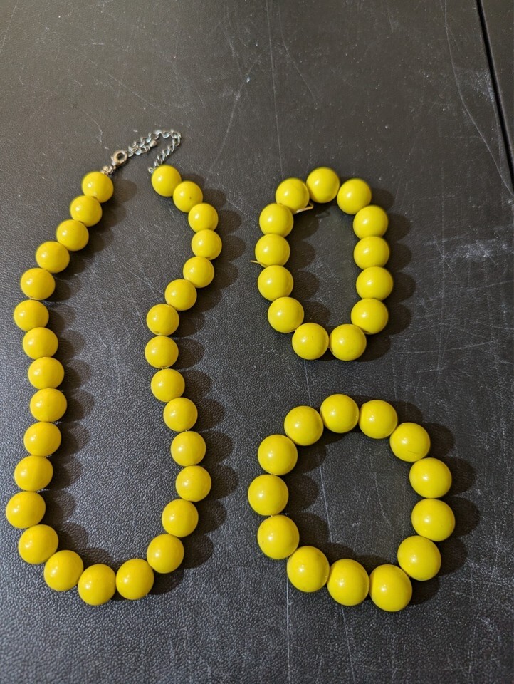vintage Barlow and Browning chunky yellow necklace and 2 bracelets