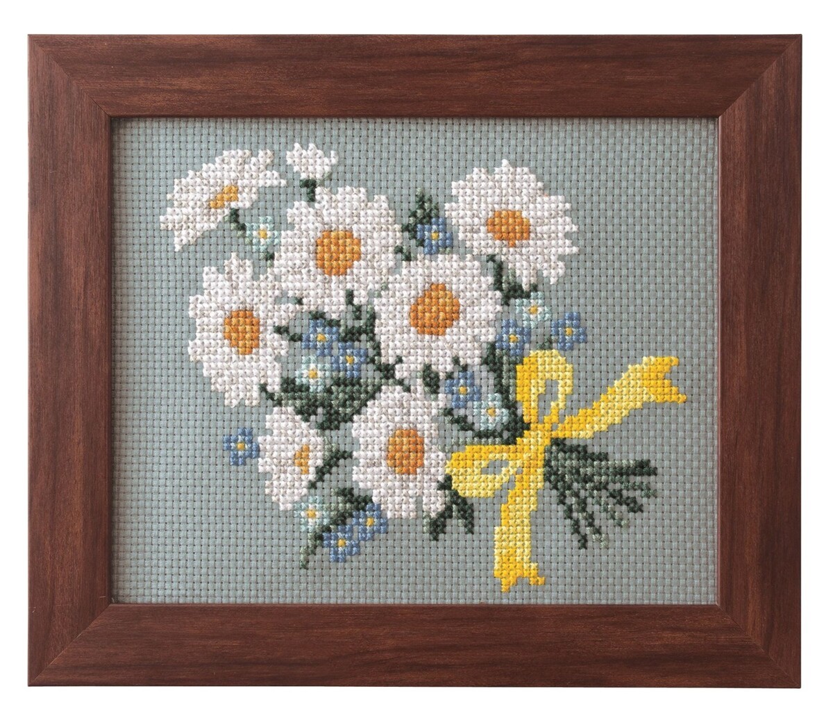 Cosmo Margaret Bouquet Seasonal Flower Arrangement Cross Stitch Kit. This cross stitch kit comes with everything you need to make the beautiful seasonal floral project. November: Margaret Bouquet. Kit Includes: COSMO Embroidery Floss (100 percent cotton), 1m each, COSMO Embroidery Cloth (100 percent cotton), Embroidery Needle, Rectangle Wooden Frame 7.5 inches x 6.25 inches, Instruction Manual with Design Chart. Frame Size: Approximately 7-1/2 inches tall x 6-1/4 inches wide. Difficulty Level: Intermediate. No. 592311. CHK-592311