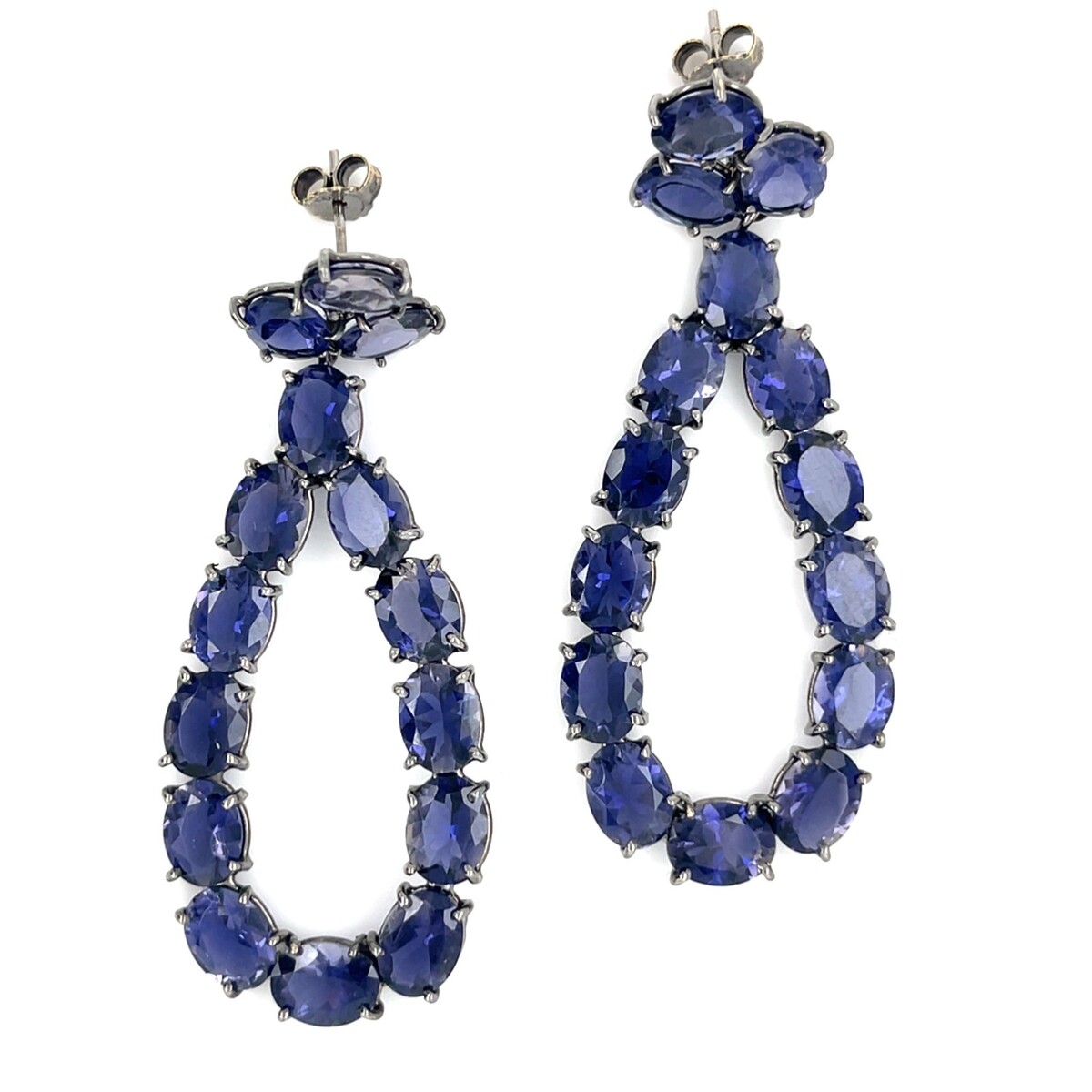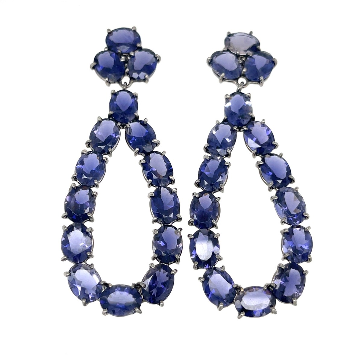 Blackened 18k White Gold 36 ct Oval Tanzanite 2 1/2" Pendant Earrings