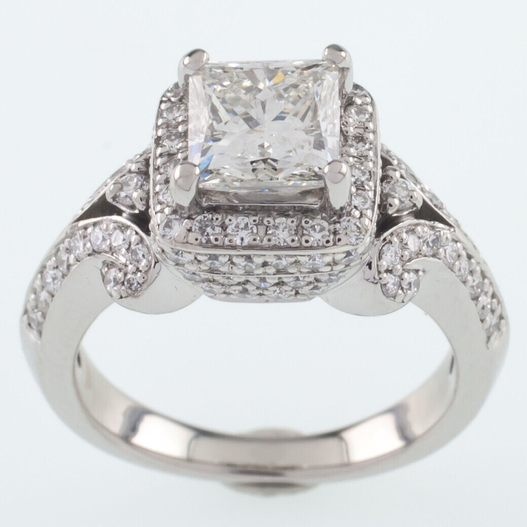 Platinum Princess Diamond Solitaire Ring w/ Accents Center 1.50 Ct Size 5.5
