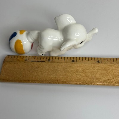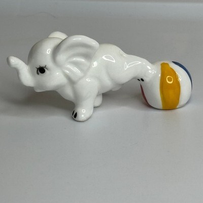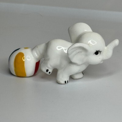 Vintage MINIATURE Ceramic Elephant Figurine With Colorful Ball Trinket Decor
