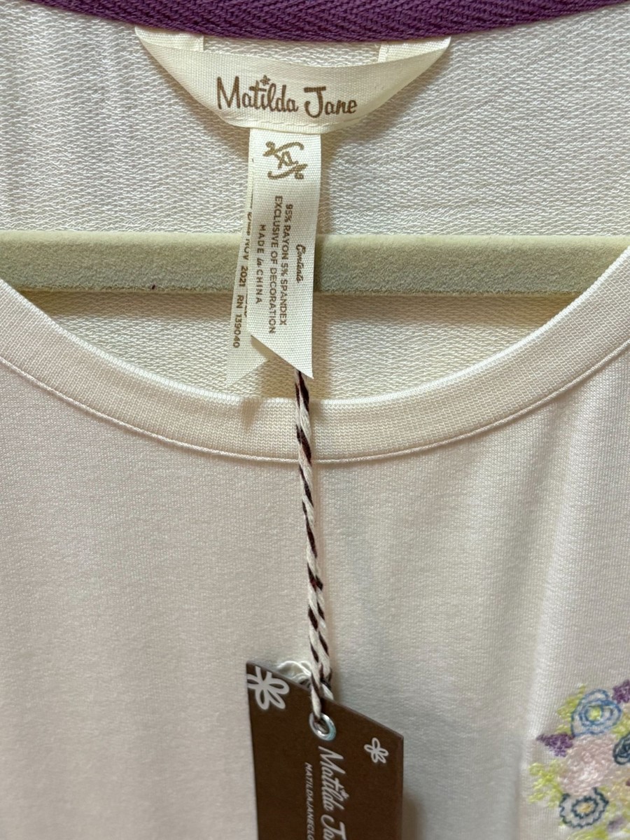 Bouquet Floral Heart-Print Tee Matilda Jane XL NWT Ruffle Sleeves Cream Color