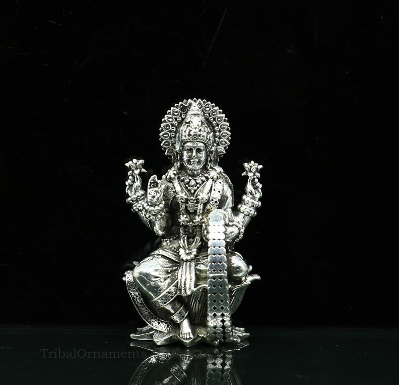 925 sterling silver laxmi ji statue sculpture figurine, puja article art26
