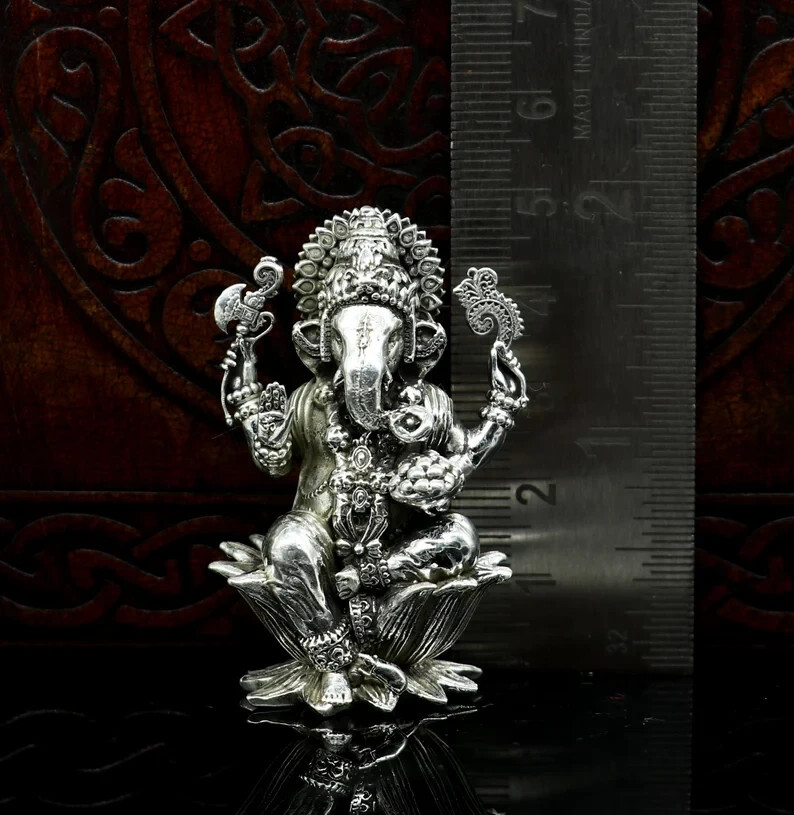 925 sterling silver ganesha statue sculpture figurine, puja article art21