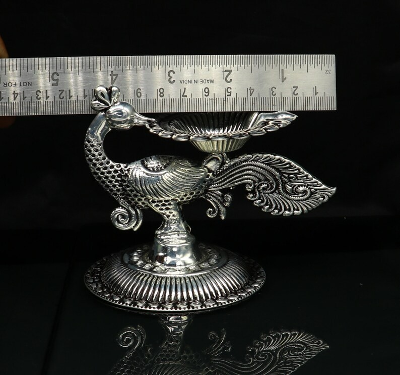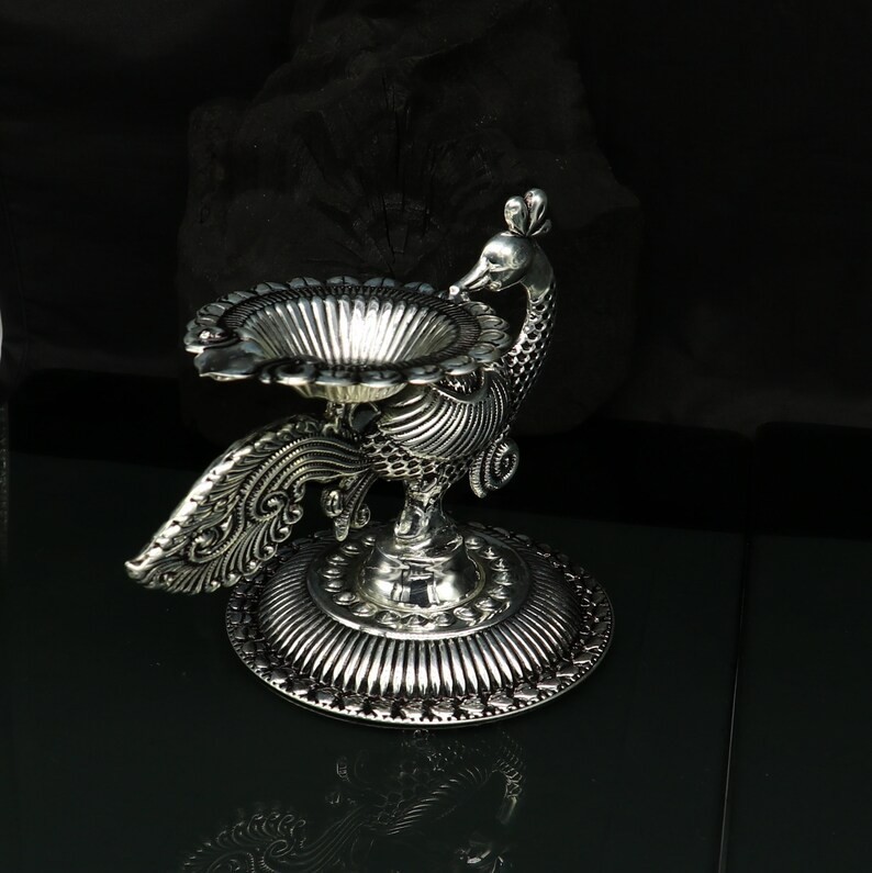 925 sterling silver peacock design silver deepak utensils puja article su86