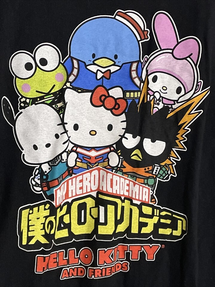 My Hero Academia Anime Hello Kitty And Friends Black T-Shirt Size Adult XL.