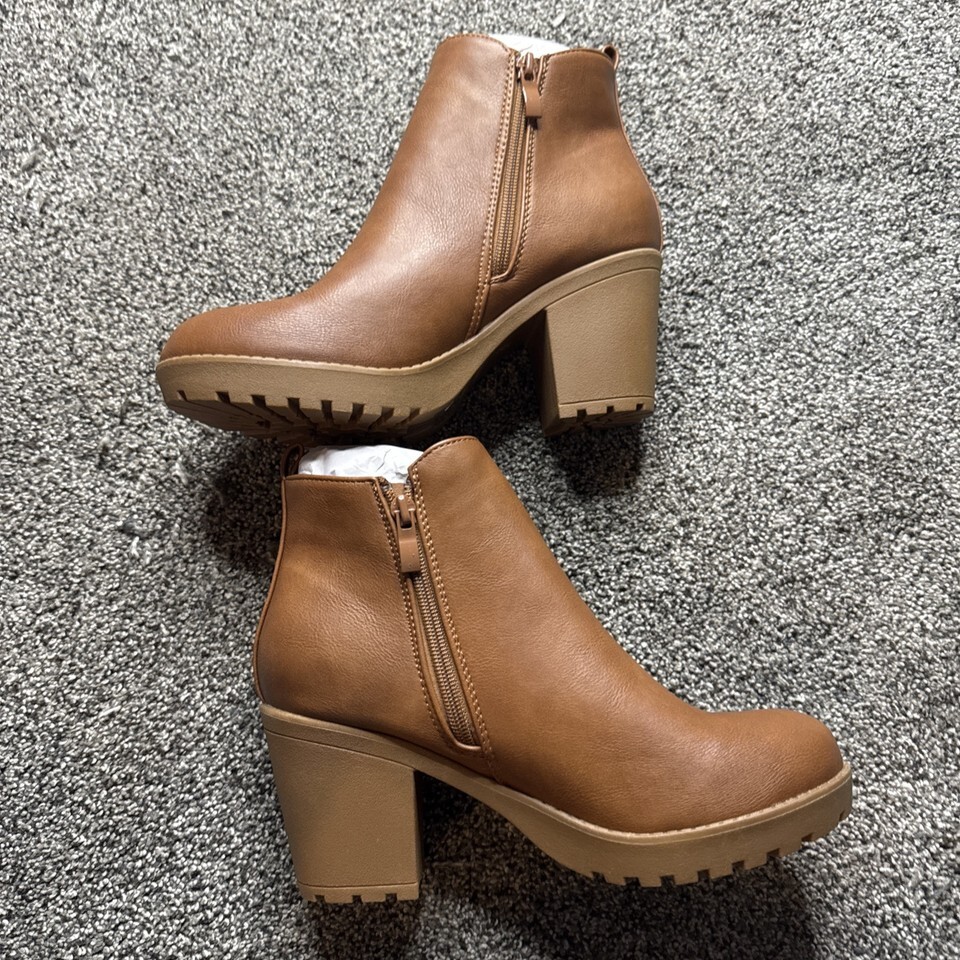 Top Moda Tan Side Zip Chunky Heel Women’s and similar items