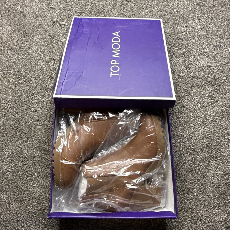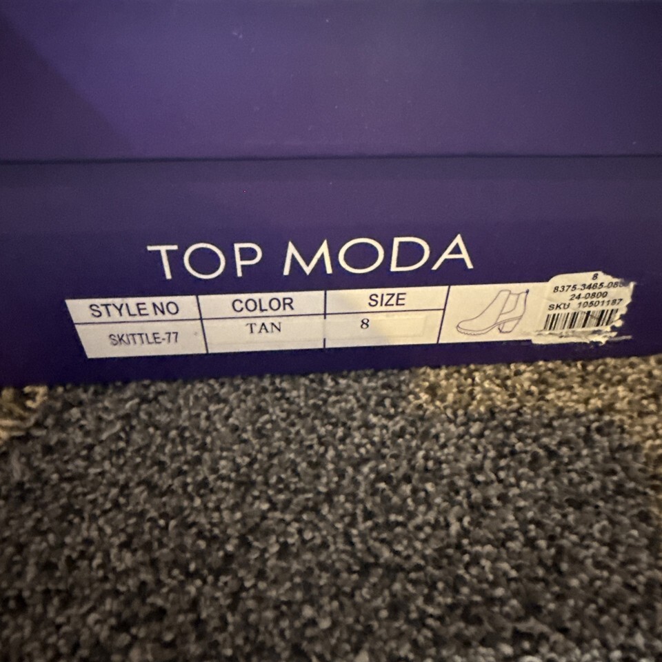 Top Moda Tan Side Zip Chunky Heel Women’s Boot Size 8 Skittle-77