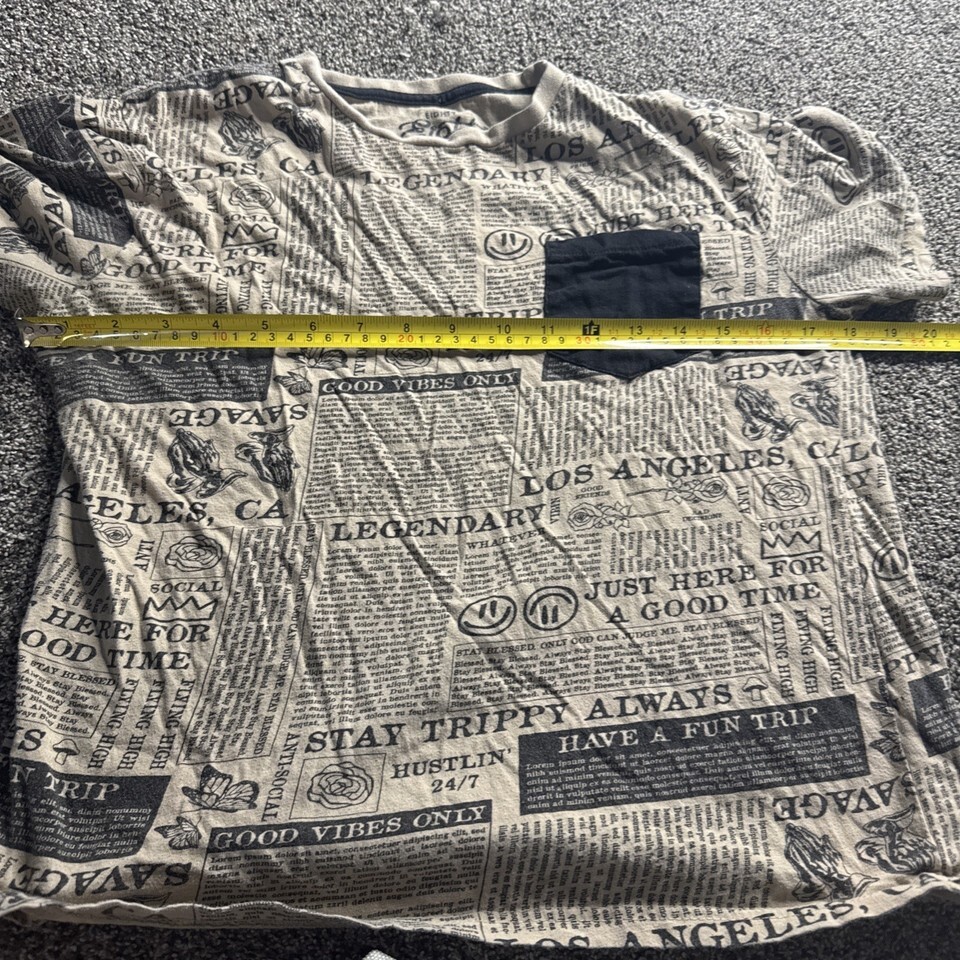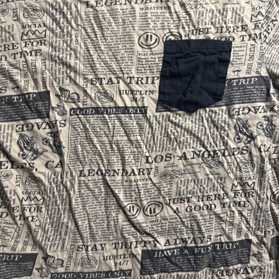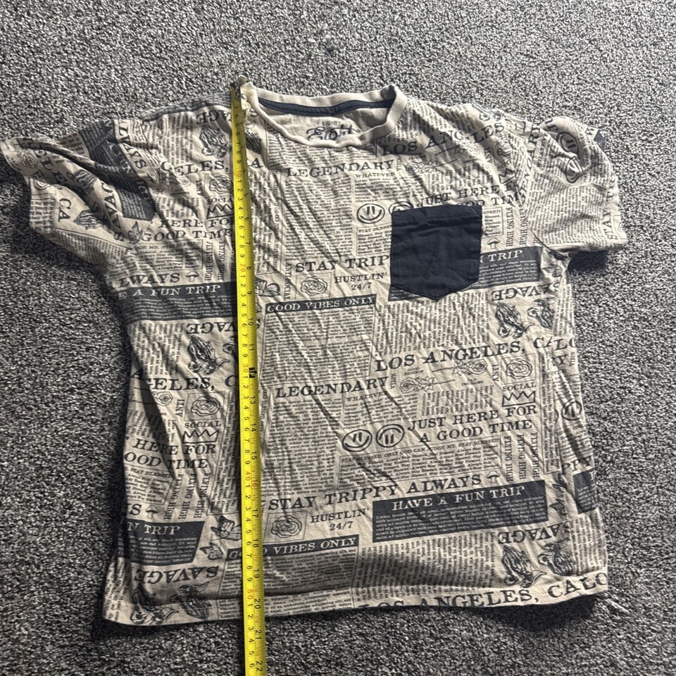 Eighty Eight Brand Youth Boys Size 14 Newspaper Print Pattern T-shirt Tee
