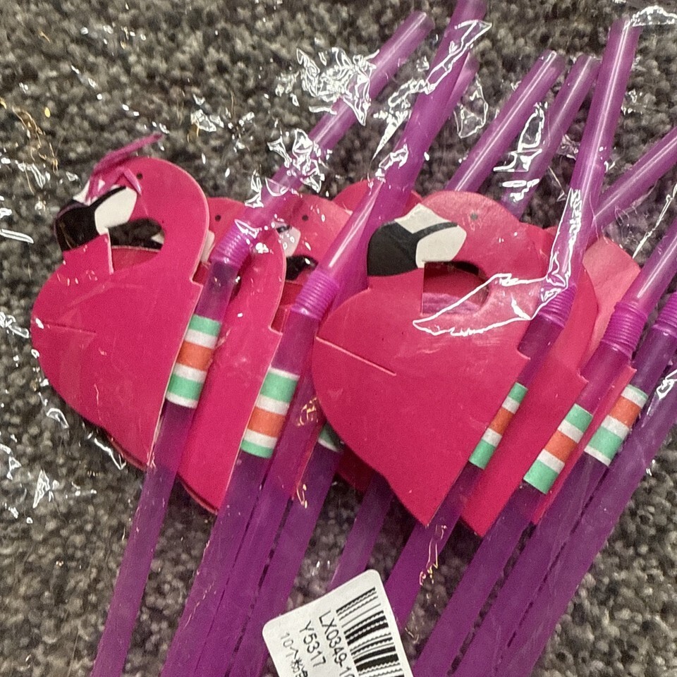 10 Party Table Luau Decor Pink Flamingo Straws Plastic Bendable