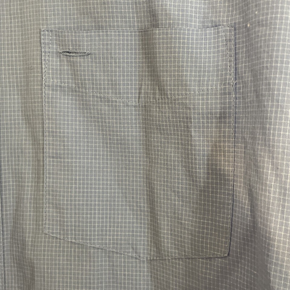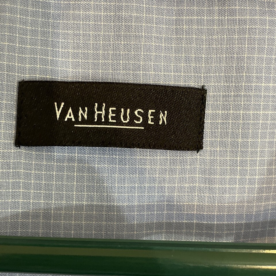 Van Heusen Button Down Shirt Top Men Sky Carolina Blue XL Micro Checker