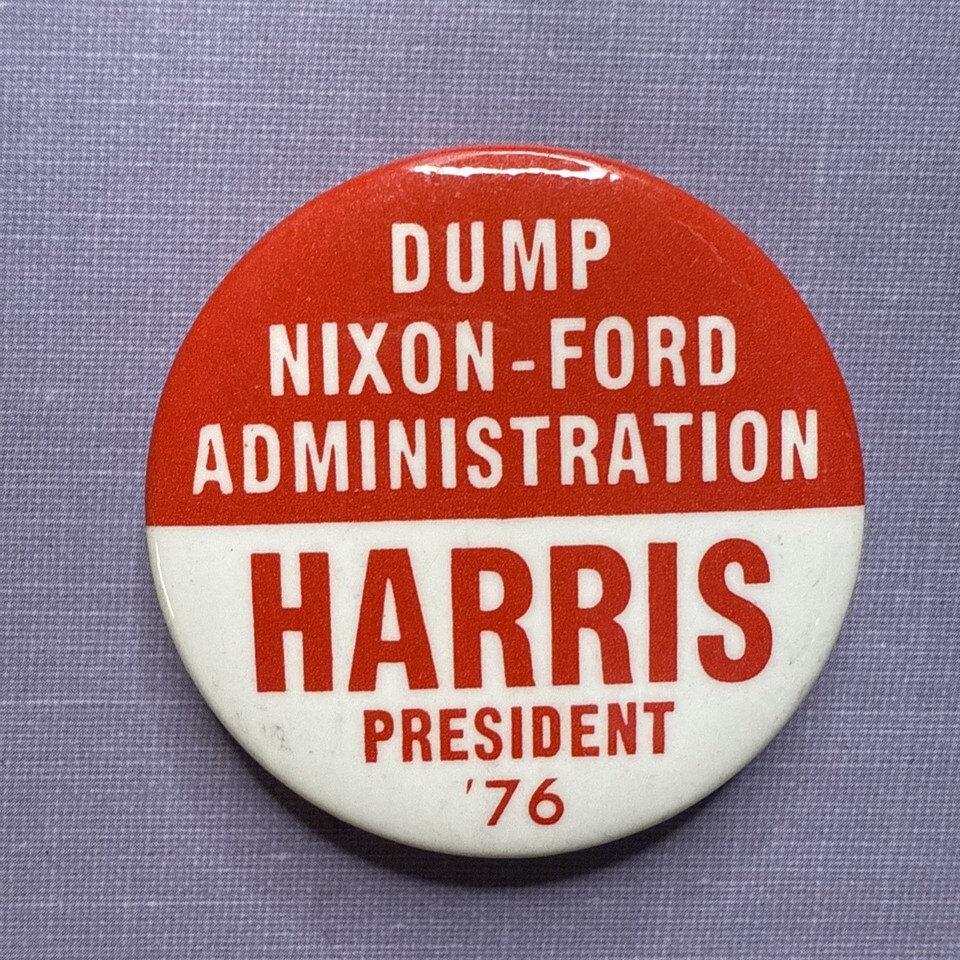 Dump Nixon-Ford Administration HARRIS President?76 1 3/4? pinback button pin