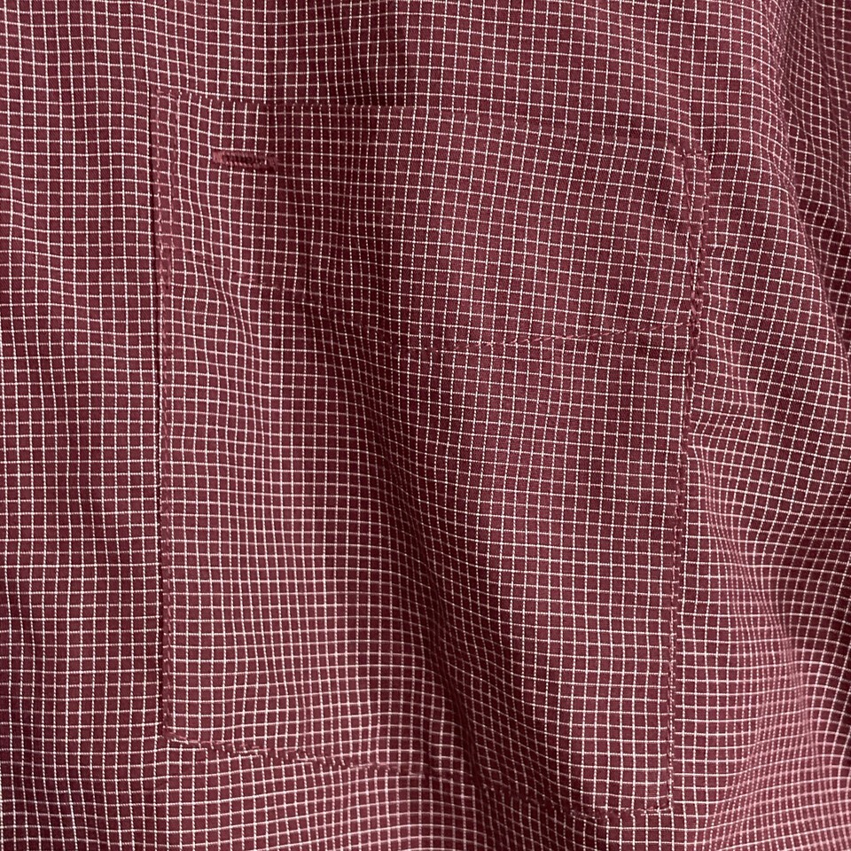 Van Heusen Button Down Short Sleeve Shirt Top XL Pocket Micro Checker Red Maroon