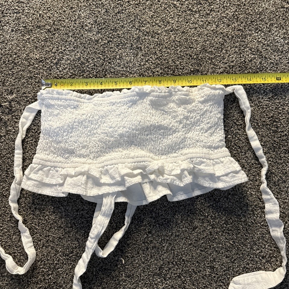 Shein Cinched Crop Top Shoulder Ties Textured Ruffles Small US 4 (S)
