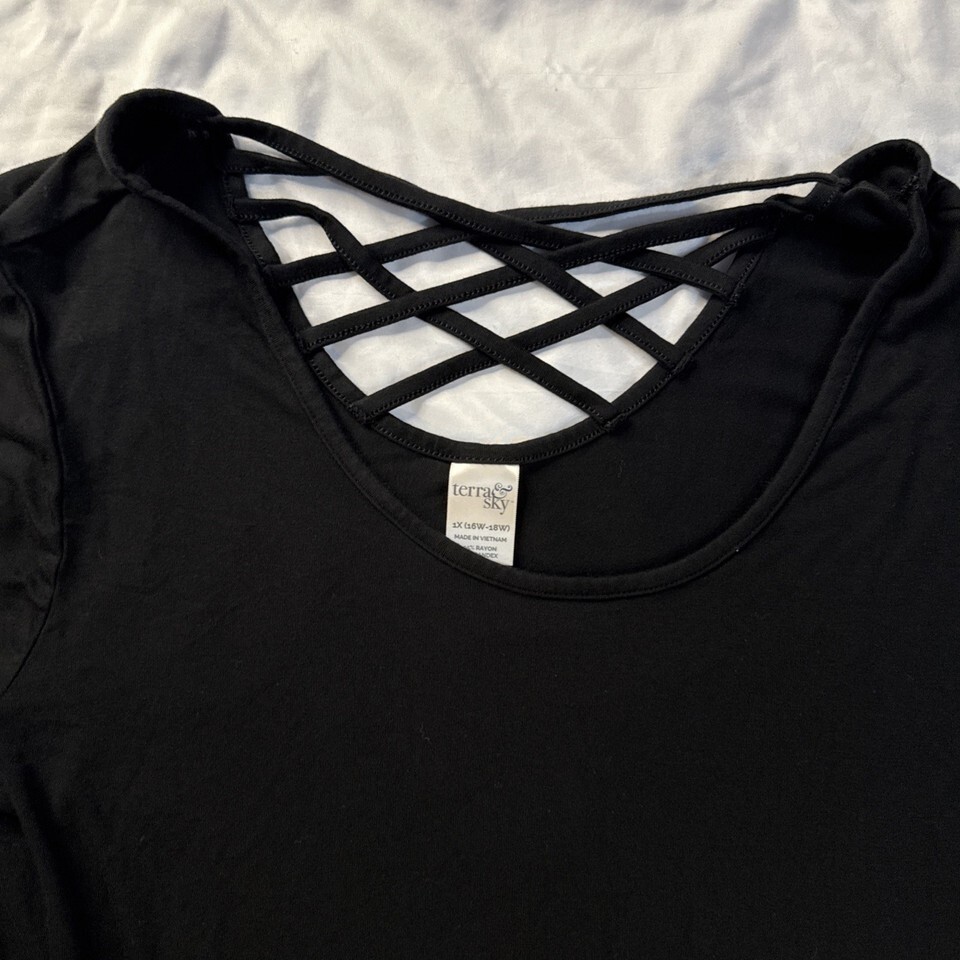 Terra Sky Cross Back Soft Shirt Dress Top Blouse Black 1X ( 16W-18W). Condition is Pre-owned - Good. Shipped with Standard Envelope for eligible items up to $20.