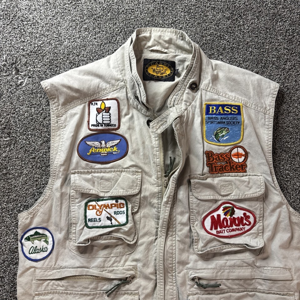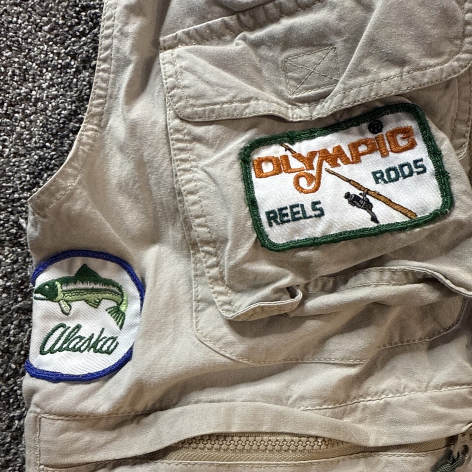 Woolrich Vest Men’s XL Khaki Cotton Tournament Fishing Sponsor Patches