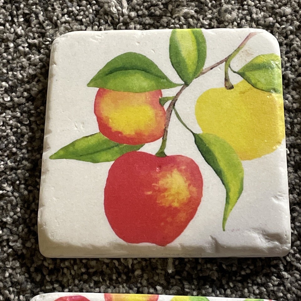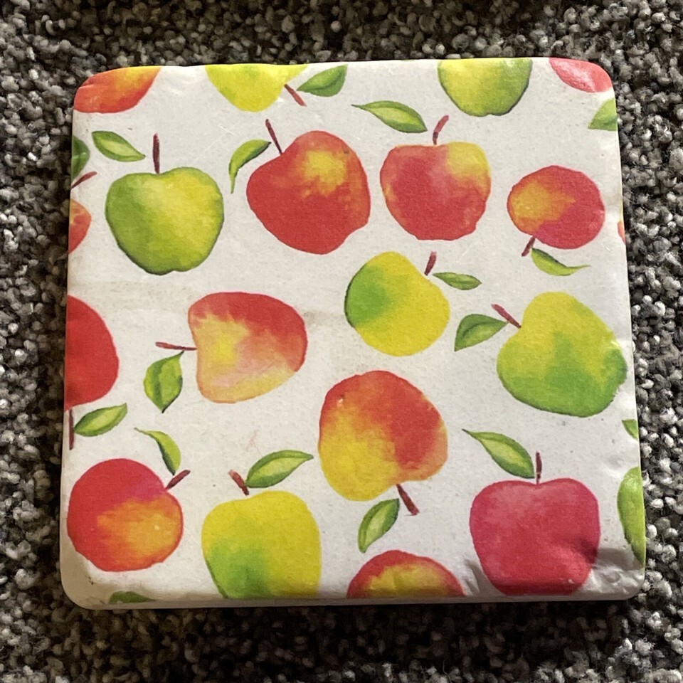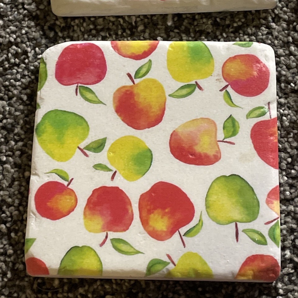 Vintage Stone Tile Cork Back Coasters Apple and similar items