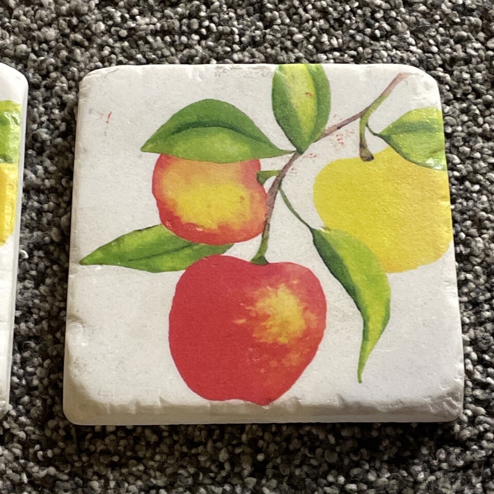 Vintage Stone Tile Cork Back Coasters Apple Theme 3.75”