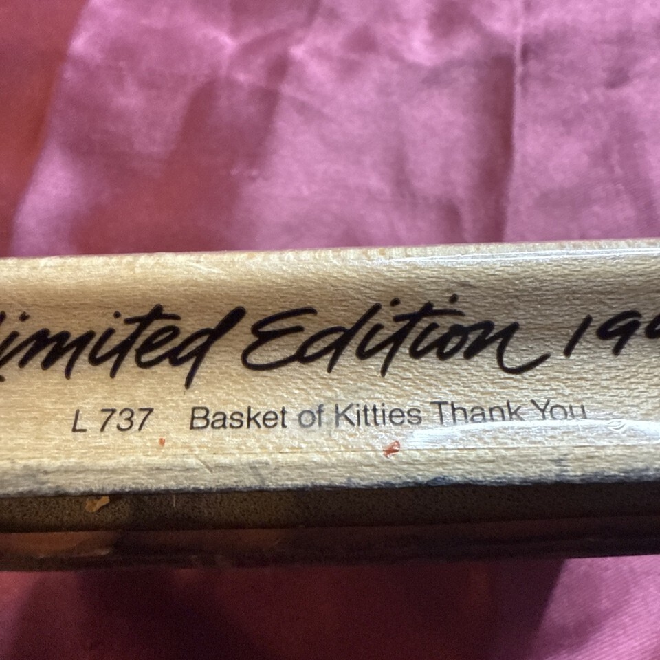 Vintage 1990 Limited Edition Basket Of Kitties Thank You Stamp #L737 Hero Arts. Condition is Used. Shipped with USPS Ground Advantage.