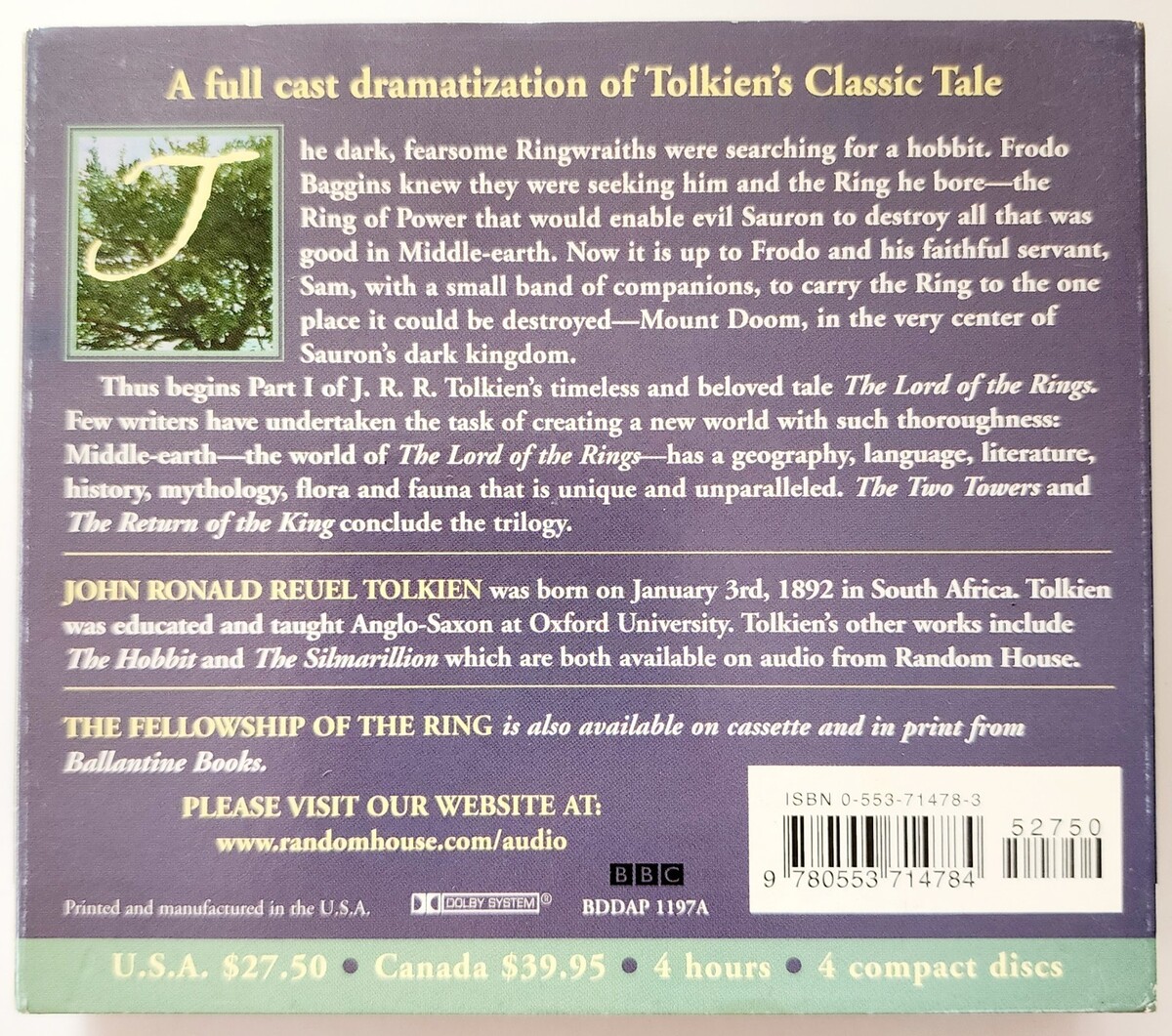 1987 The Fellowship Of The Ring Audio Book CD 4 Disc Set LOTR Tolkien VTG SH1A