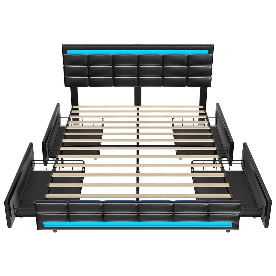 ?4 Large Capacity Drawers?The bed has four drawers at the bottom of the bed offering you ample storage place for bed sheets, accessories, off-season clothing, etc. The drawers are also installed with rolling wheels to easily push in and pull out.