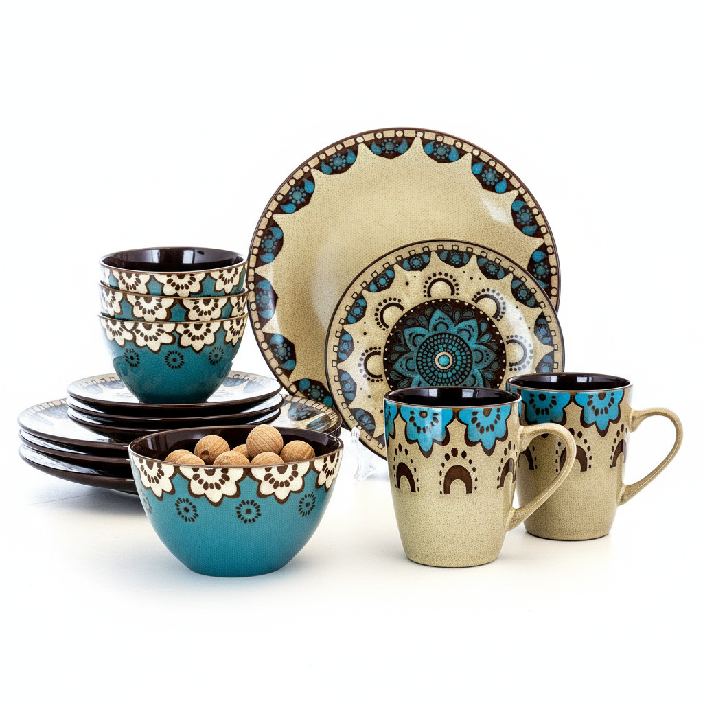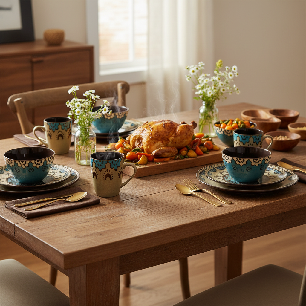 Complete for Four: Includes everything you need for a full place setting, such as plates, bowls, and mugs, making it ideal for family gatherings or entertaining guests.
