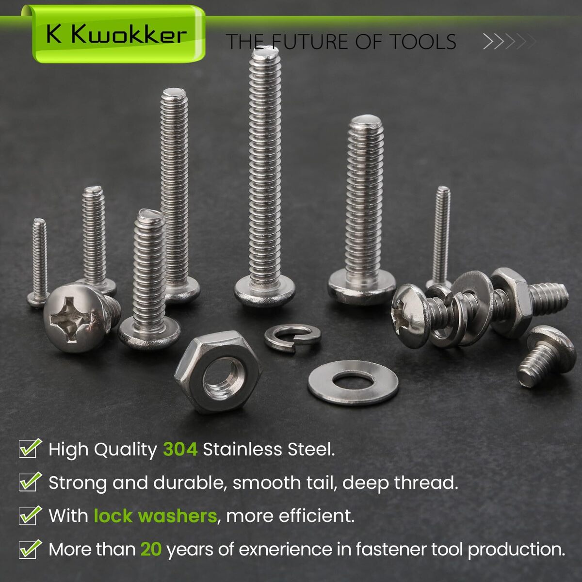 High Quality 304 Stainless Steel. More Than 20 Years of Experience in Fastener Tool Production: Stainless steel nut bolt assortment sets, rust resistance and deep thread. Extraordinary Technology Professional Durability