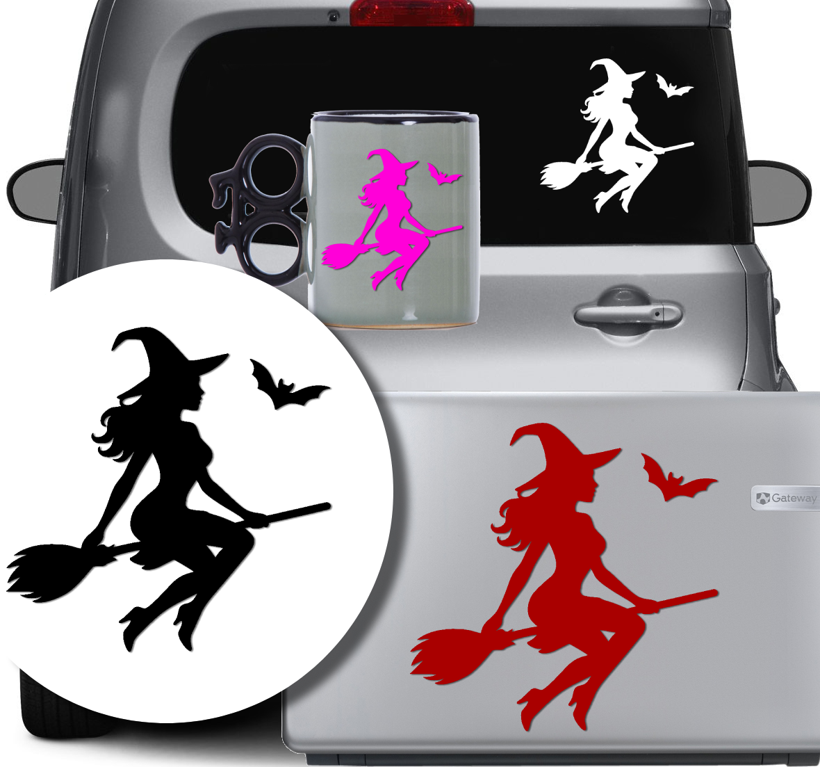 Charming Witch Flying On Broom And Bat Vinyl Decal Sticker for Car Window Bumper