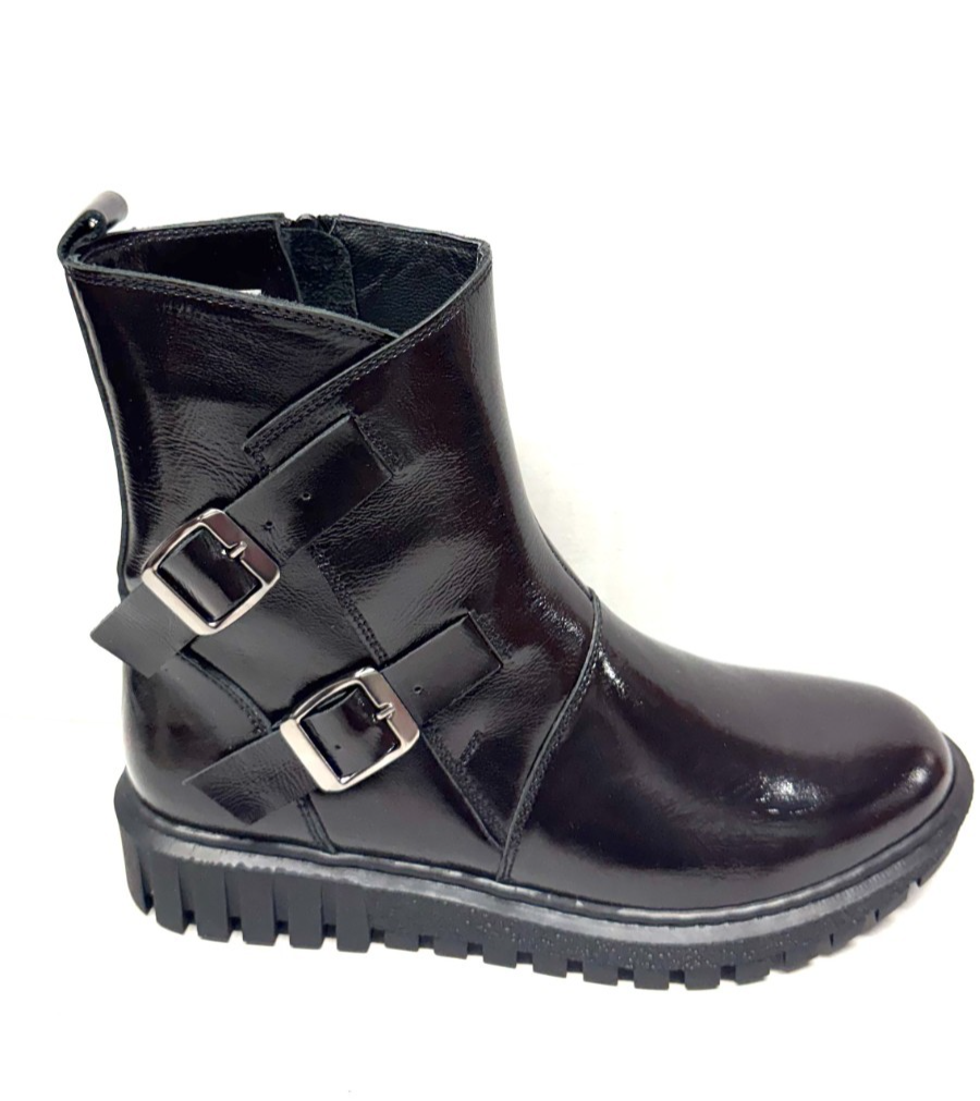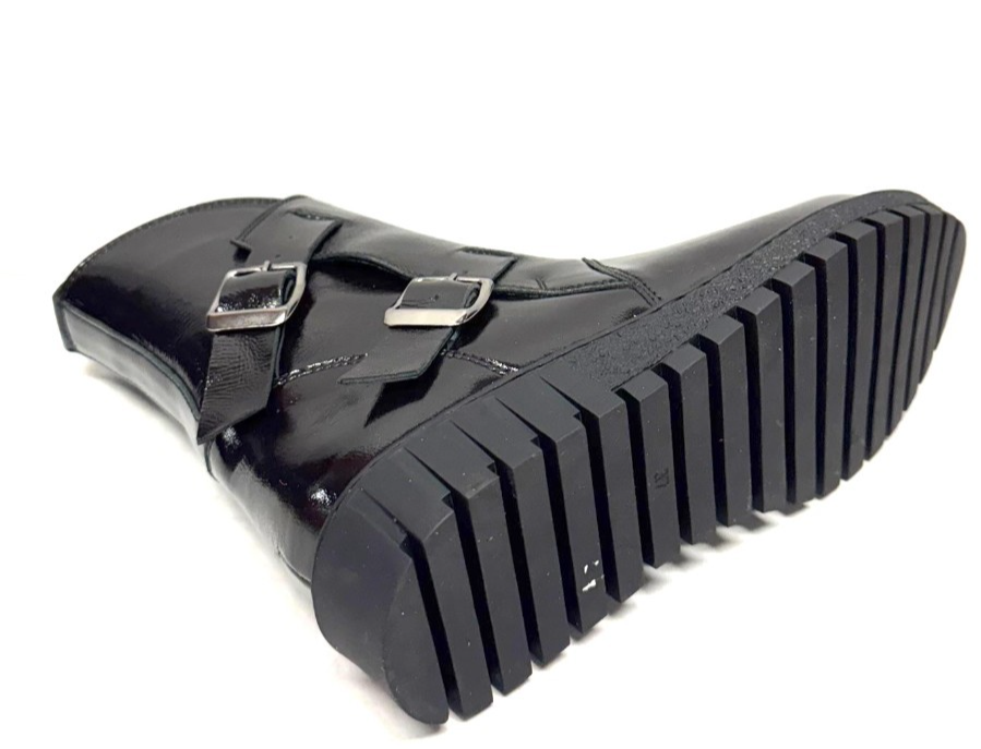 MIZ MOOZ PATENT LEATHER BOOTS SIDE FULL ZIP & BUCKLE BLACK 37EU / 7US # Z-51