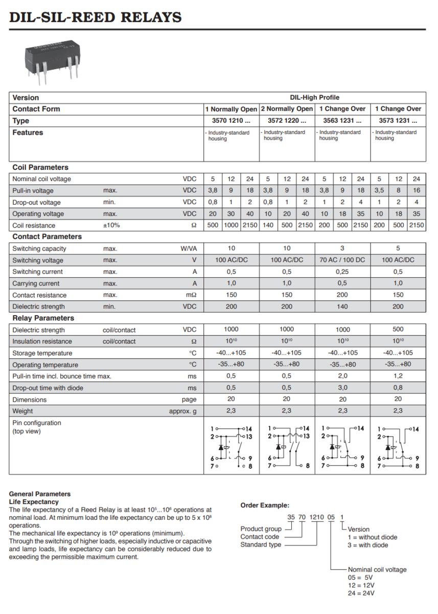 3573 1231 243 GUNTHER Dry Contact Reed Relay 24VDC SPDT 0.5A/1A With Diode