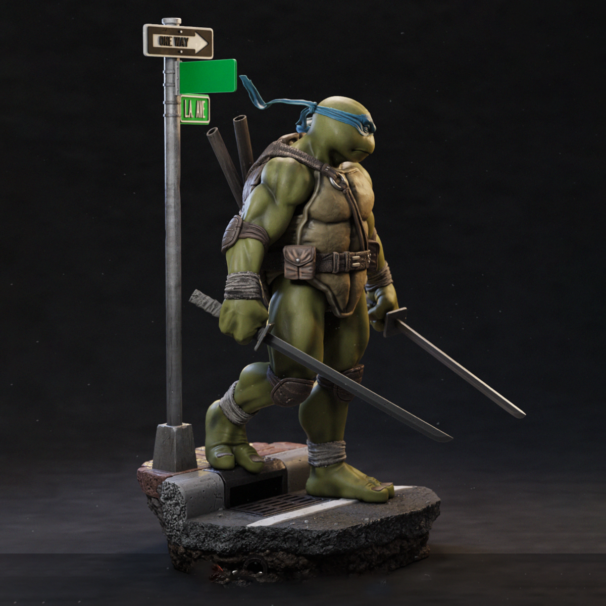 This STL statue showcases a disciplined reptile warrior standing ready with twin swords drawn. The detailed armor wrappings, calm stance, and urban-themed base make this sculpt ideal for collectors seeking strength and composure in their display lineup.