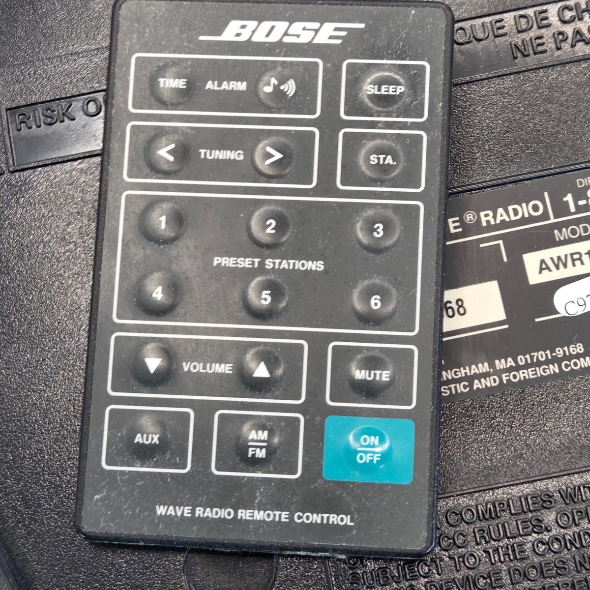 It comes with the original power cord, plug-in antenna, and Bose remote control. The remote currently does not function (may just need a battery replacement) but is included. The radio itself powers on, displays time, tunes stations, and produces clear sound. Some light cosmetic wear consistent with age, but overall well kept.