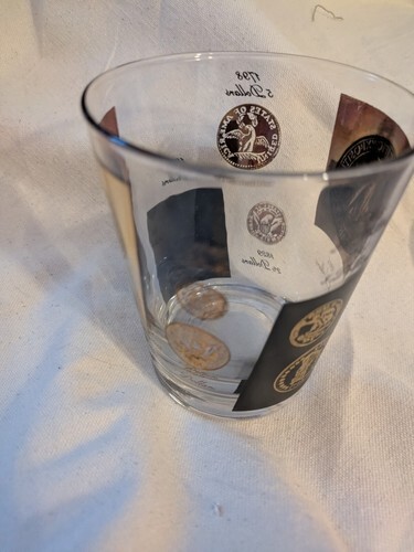 1960 MCM Cera Bob Wallack Highball Cocktail Glass Gold Black Coin 4.5 In Tall