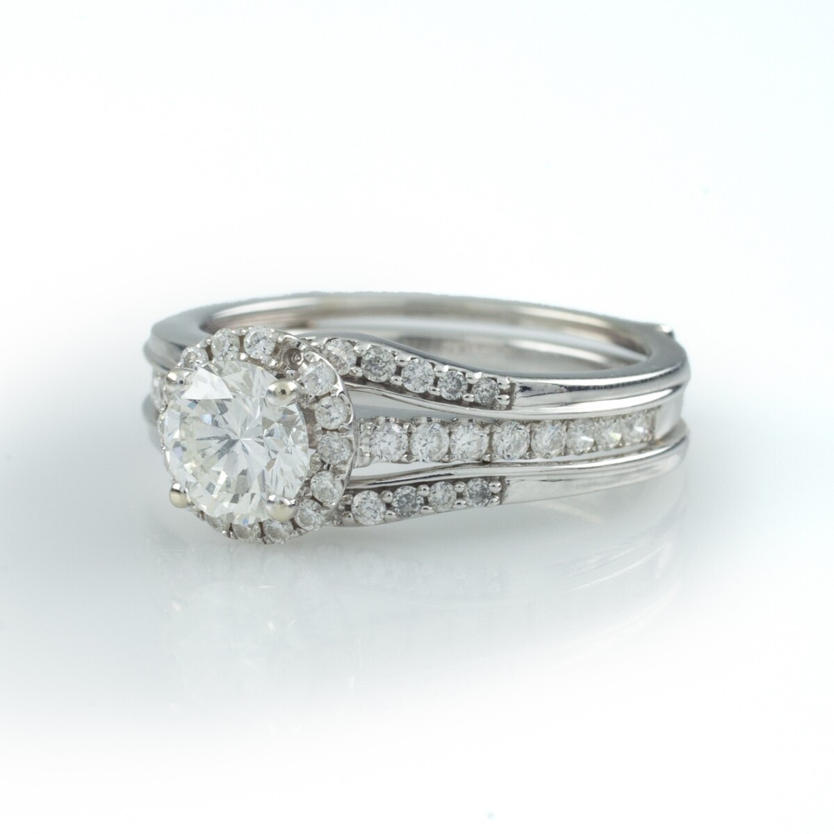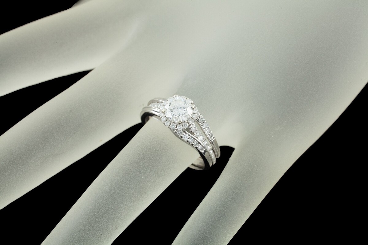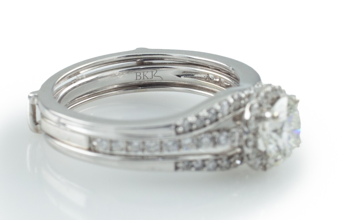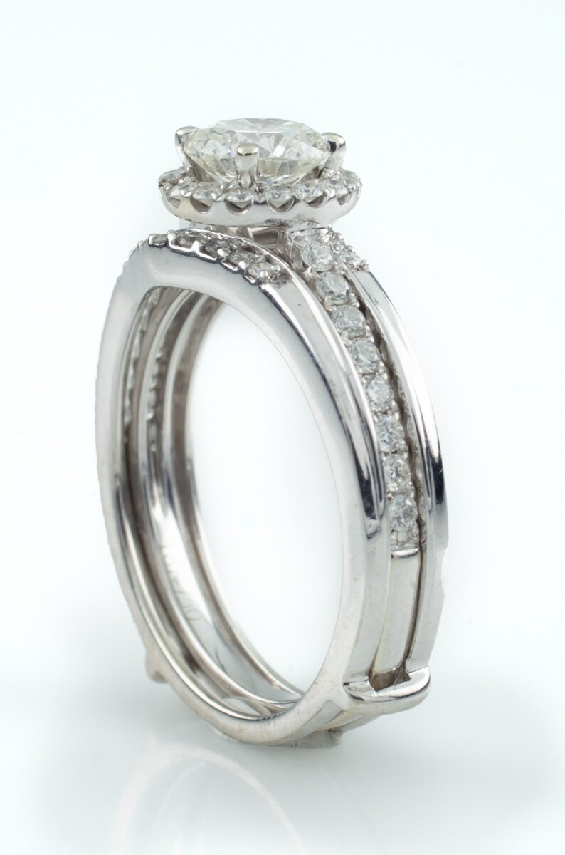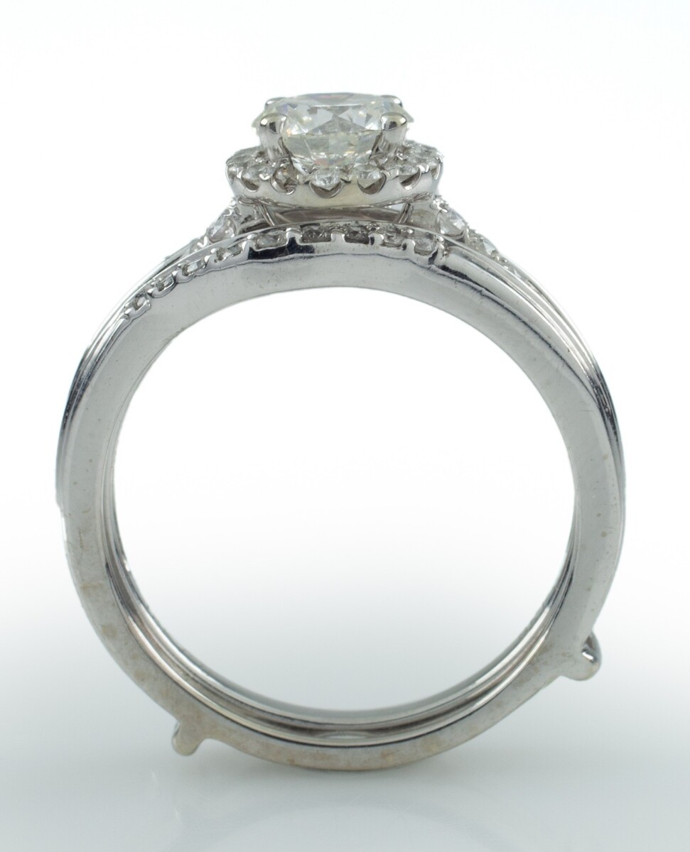 18k White Gold Diamond Engagement Ring w/ Wedding Enhancer Guard .75 ct Center