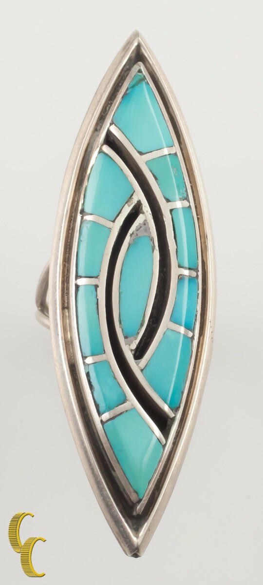 Silver Turquoise and Onyx Lapidary Inlay Ring Size 5.25 Gorgeous Craft