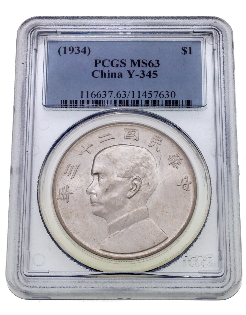 Jahr 23 1934 China 1 $ Junk Dollar Y-345 Bewertet Von PCGS Als MS-64