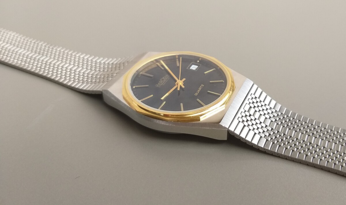 Vintage Swiss Black Dial Electronic Quartz Watch Herodia 1980’s NOS Unworn Uhr