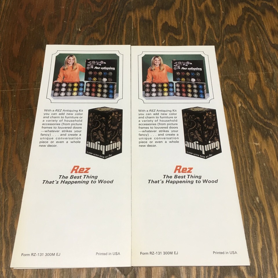 Vintage advertising pamphlets for Rez antiquing colors