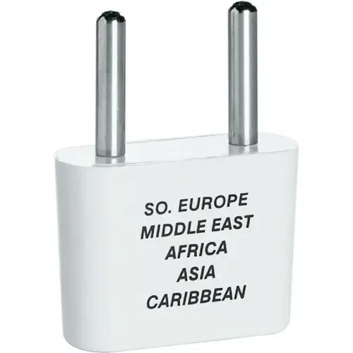 The Travel Smart NW1XR 2-blade thin pin adapter plug is a compact, lightweight solution for powering dual-voltage electronic devices in Europe, Africa, the Middle East, parts of Asia, and select Caribbean regions. Designed with two slender, parallel pins matching the Type E (Europlug) outlet standard, it enables safe, secure connection to wall sockets commonly found in countries such as France, Germany, Belgium, Poland, Sweden, and others that use 2.5mm pin spacing. Constructed from high-impact, flame-retardant plastic with a clean white finish, it provides durable, non-conductive protection for travel use. This adapter does not convert voltage ? intended exclusively for use with dual-voltage devices (100?240V) or in conjunction with a separate voltage converter/transformer.