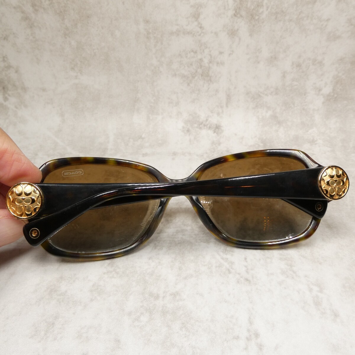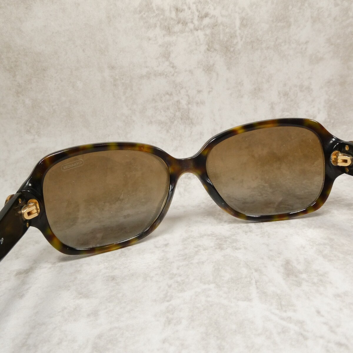 "Coach" logo metal accent on both temples.