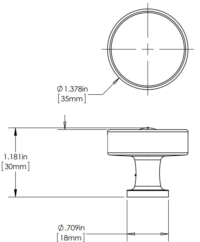 Diameter - Overall Dimensions: 1.378" (35mm) x Projection - Overall Dimensions: 1.81" (30mm) x Base Diameter: 0.709" (18mm). Material: Metal. Packaged with one screws