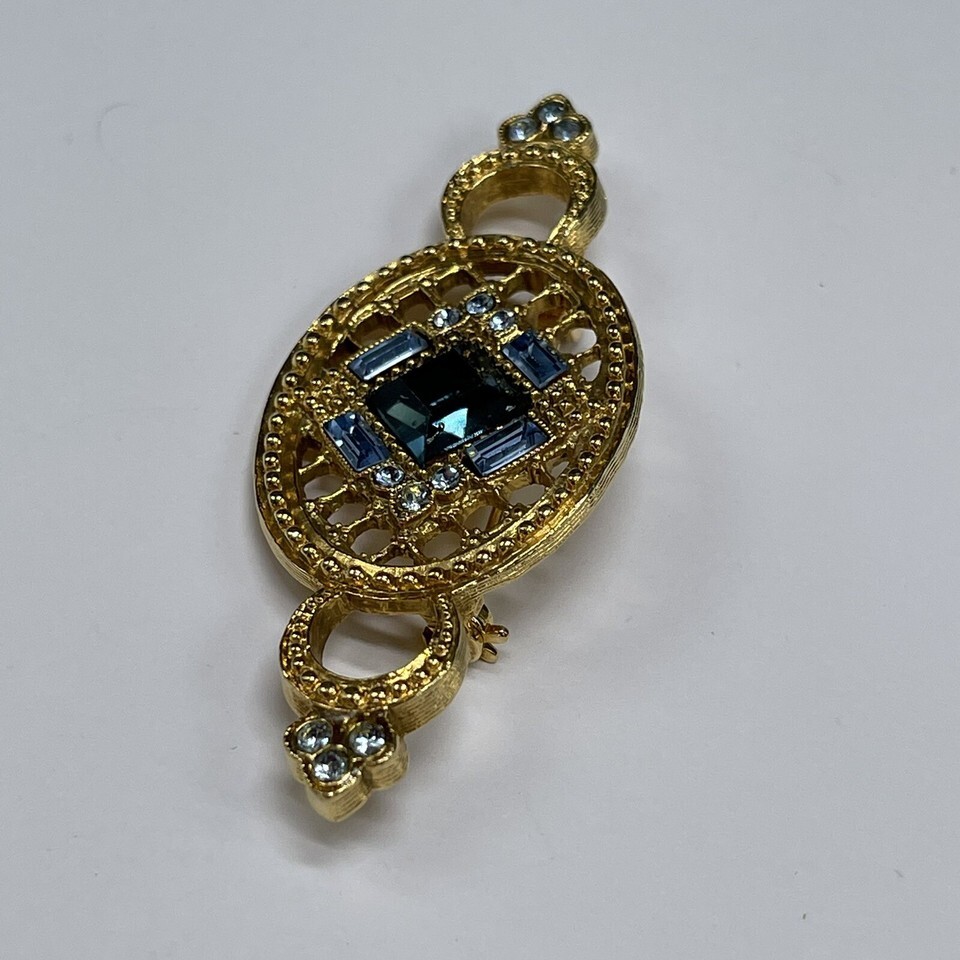 Vintage Faux Rhinestones Gold-Tone Brooch Pin 1970's or 1980's
