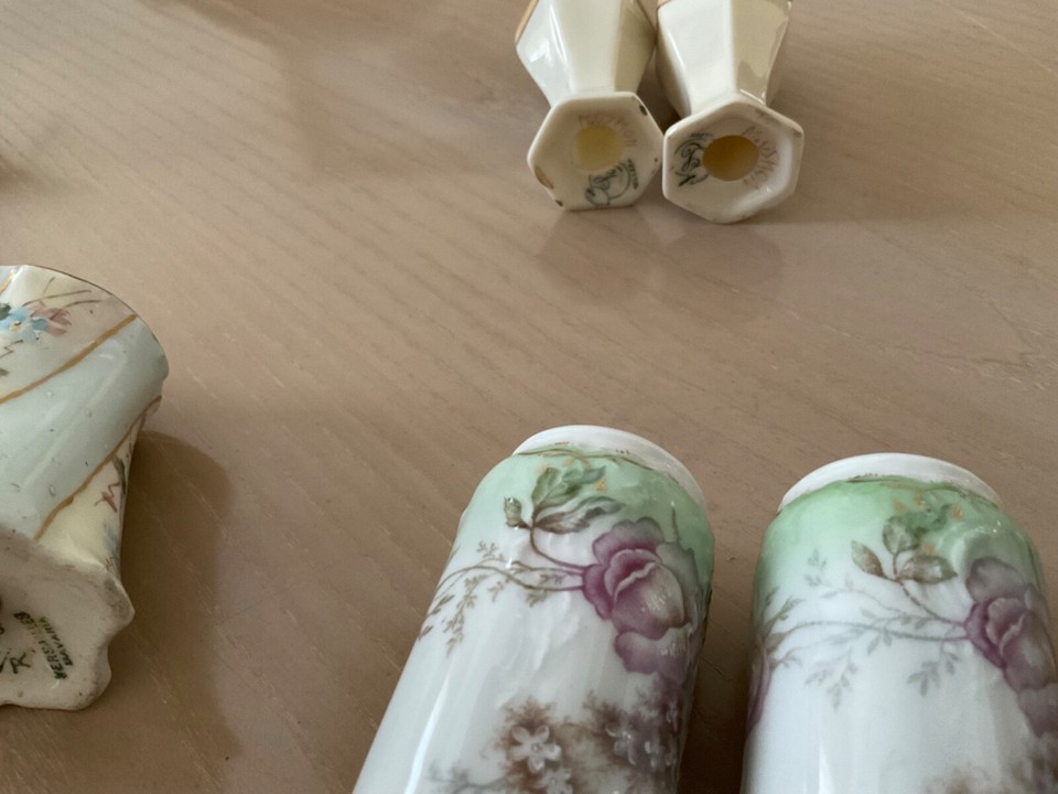 German/Bavrian Salt Pepper Shakers. Measuring 2 3/4?to 3 3/4? high. Some missing cork stoppers.