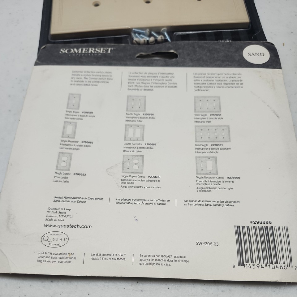 3 gang toggle cover wallplate, 296688 Almond Cream Ivory Light Beige |