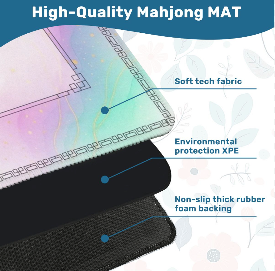 Upgrade game night with this beautifully designed non-slip Mahjong mat featuring a stunning pastel watercolor gradient. Soft, durable, and easy to transport ? it?s the perfect mat for Mahjong beginners, casual players, and seasoned pros who want smoother, quieter gameplay with style.